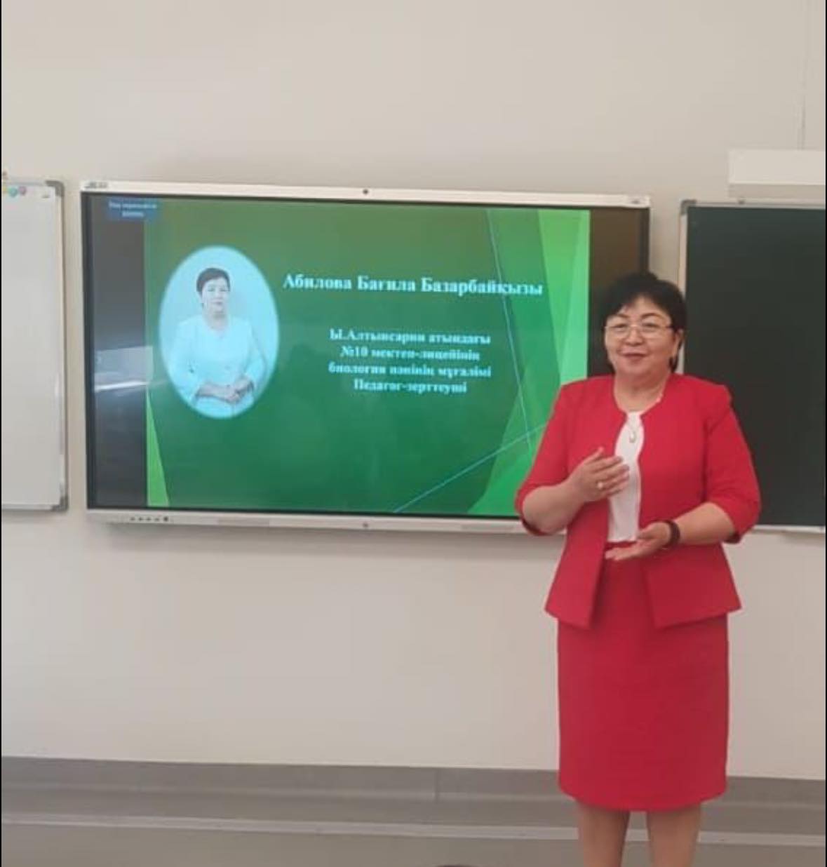 Ұстаздық ұлы жолда білімі мен біліктілігін ұштастыра білген, заманауи болмыс қалыптастырып,шәкірт жүрегінде орын алған әріптесімізге толағай табыс пен шалқар шығармышылық тілей отырып,қызметті абыройлы болсын дейміз!!!