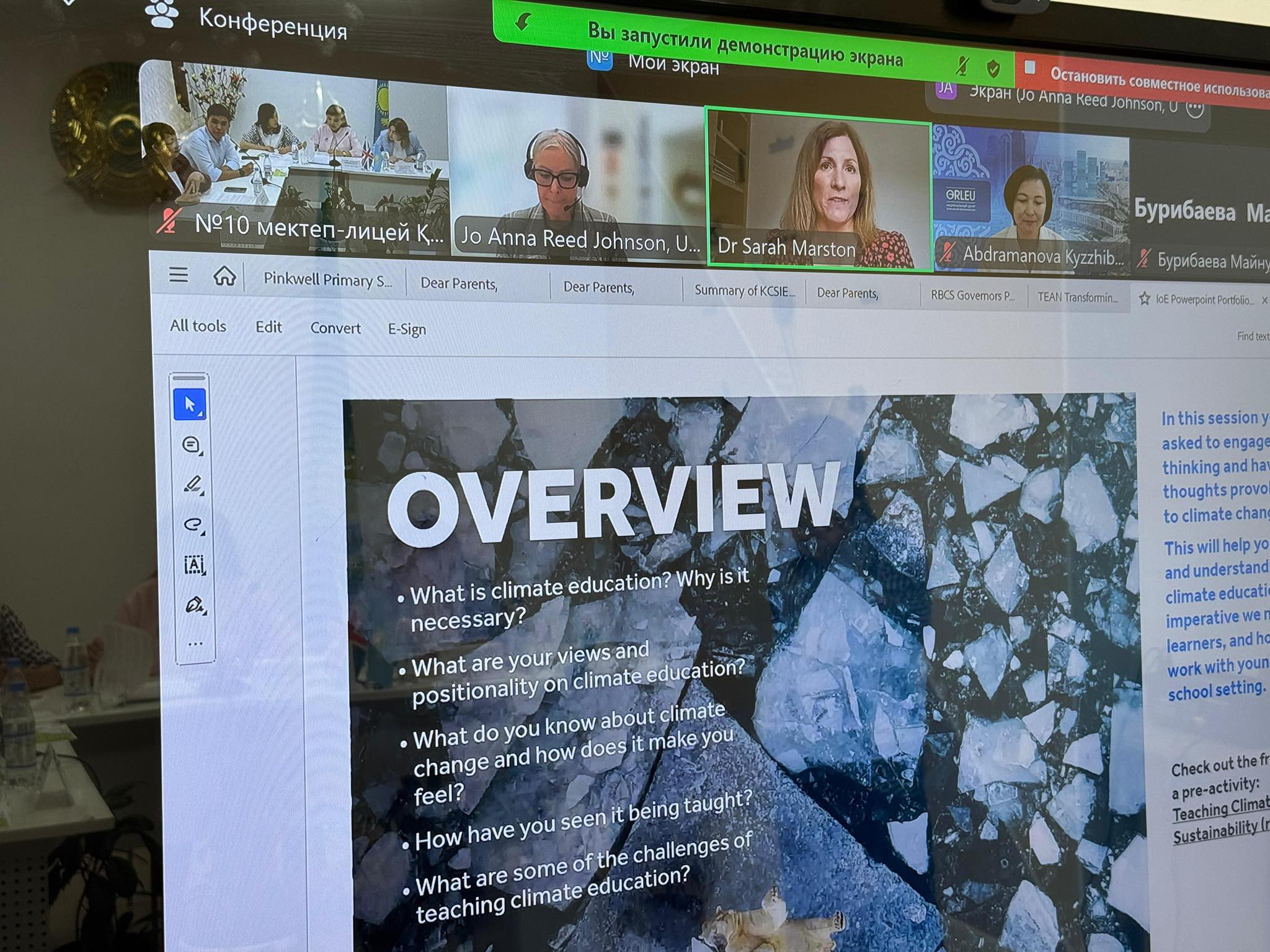 1. Климаттық оқытудың барлық деңгейдегі білім беру мекеиелерінде маңыздылығын мойындай отырып, оның мазмұнын жетілдіруге және кеңінен енгізуге ниет білдіреміз.