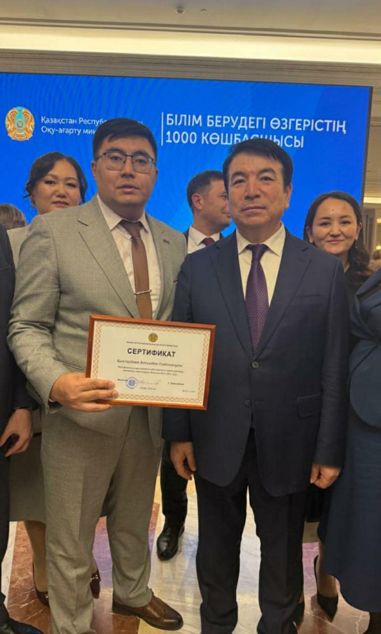 2023 жылдан бастап Мемлекет басшысының тапсырмасы бойынша аса өзгермелі жағдайларда басқаруға дайын кәсіби көшбасшыларды іріктеу және даярлау мақсатында «Білім берудегі өзгерістердің 1000 көшбасшысы» жобасы қолға алынған болатын. Білім берудегі өзгерістің көшбасшыларын іріктеу бес кезең бойынша жүзеге асырылады. Бірінші кезеңде үміткерлер өз құзыреттілігін бағалау үшін тестілеуден өтеді, екінші кезеңде оқуға жіберіледі, үшінші кезеңде еліміздің жетекші мектептерінде тағылымдамадан өтеді, төртінші кезеңде қорытынды бағалау рәсімі жүргізіледі және бесінші кезеңде министрлік жанындағы комиссиямен әңгімелесуден өтеді. Нәтижесінде басшылардың республикалық кадрлық резерві құрылып, сертификат табысталады. 5 кезең бойынша өткізілген 2024 жылғы кадрлық резервке мектебіміздегі озық ойлы, қадамы нық көшбасшы ұстаз Қыстаубаев Алтынбек Сейілханұлын сертификатқа ие болып, кадрлық резервке қабылдануымен шын жүректен құттықтаймыз! Осы бағытта алар асуыңыз көп, жетер жетістігіңіз мол болсын!