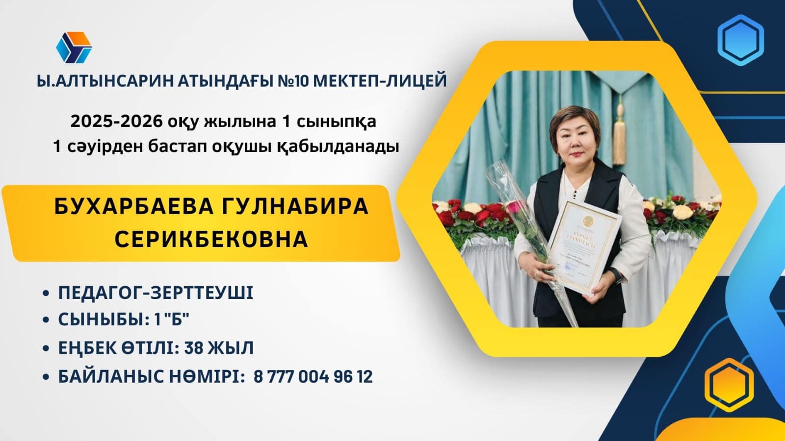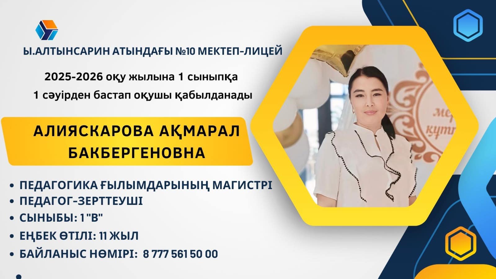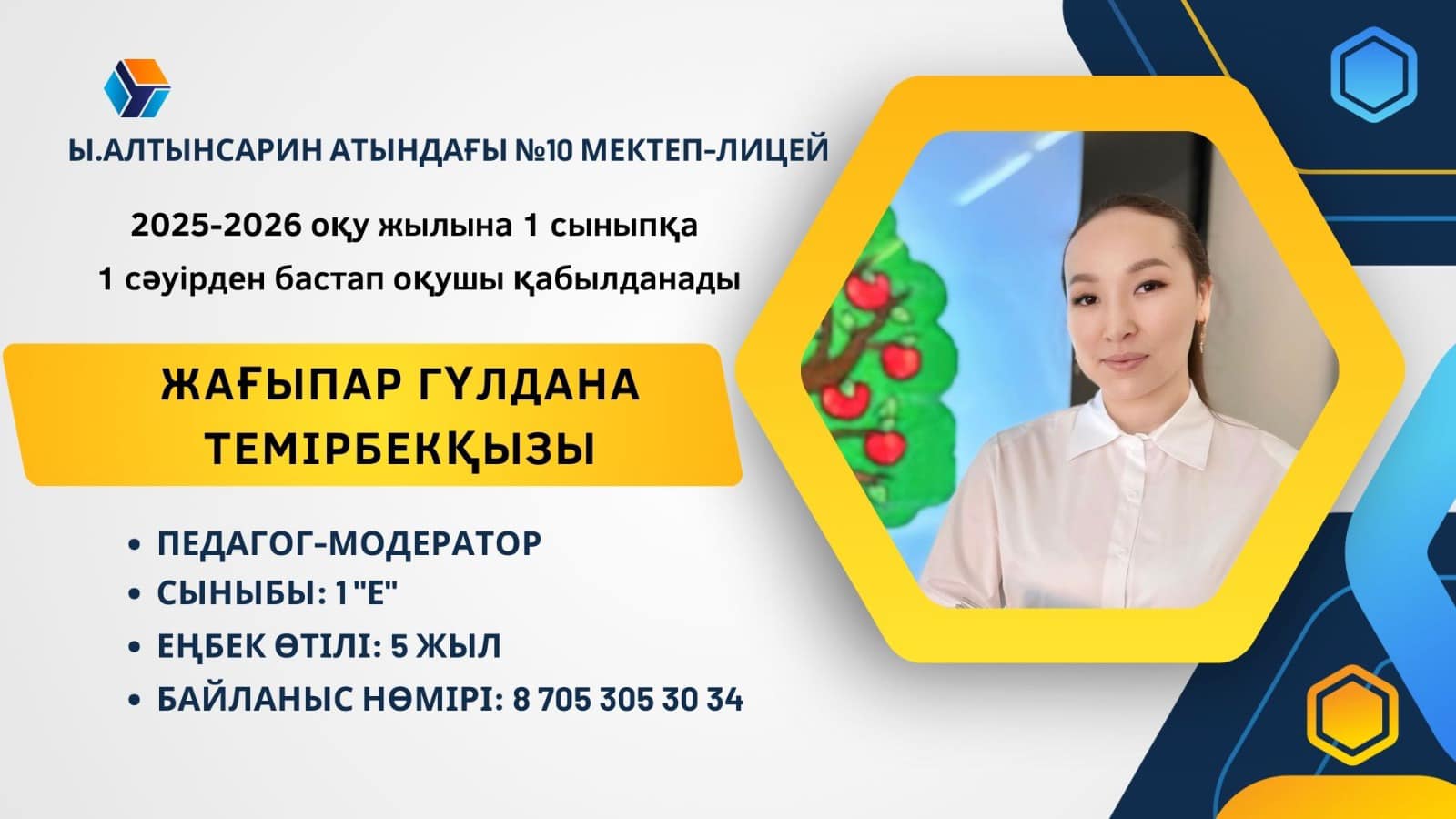 Ы.Алтынсарин атындағы 10 мектеп - лицей 2025 жылдың 1 сәуір - 31 тамыз аралығында 1 сыныпқа құжаттар қабылдайды.