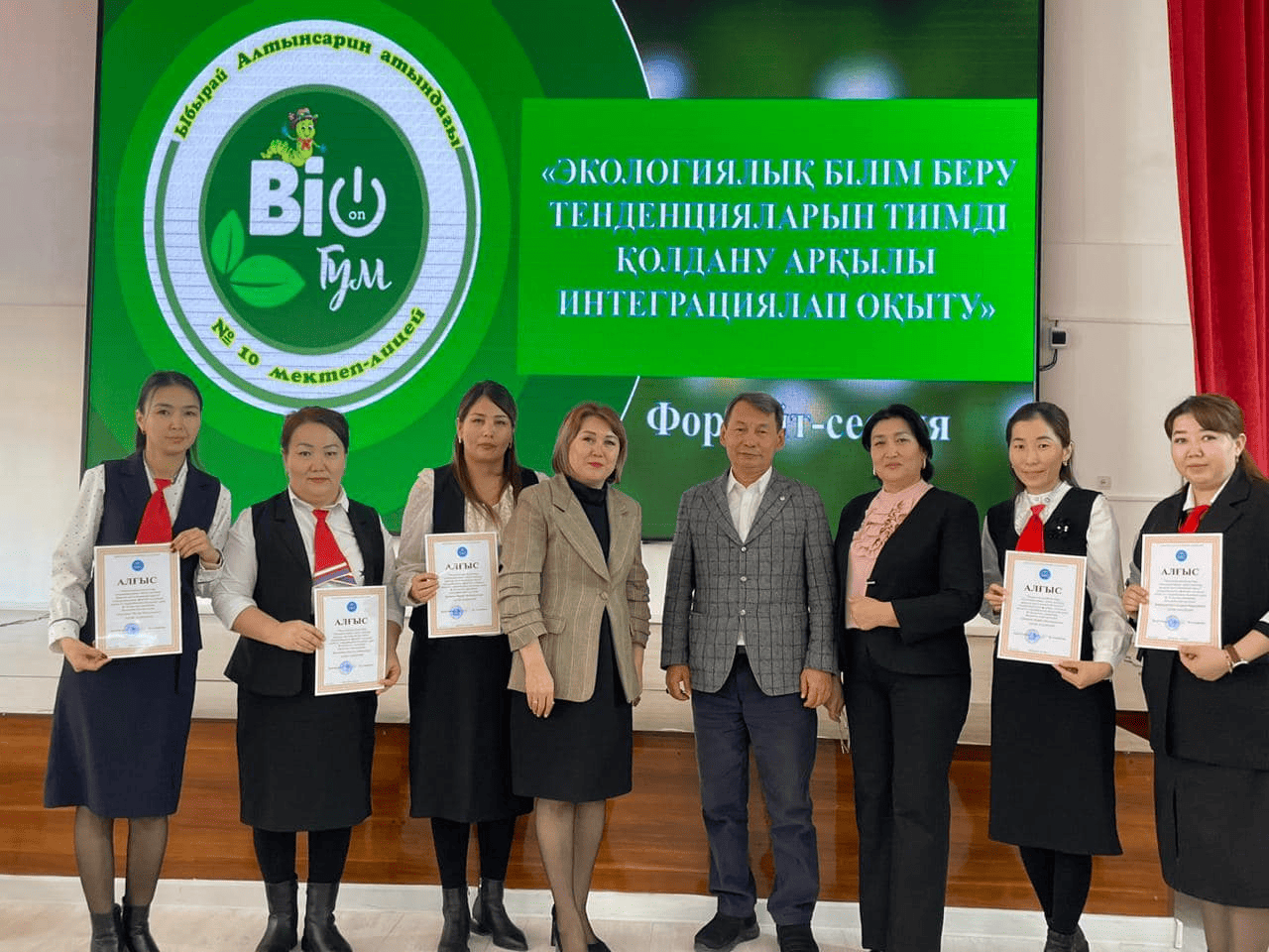 Білім беру жүйесі уақыт өткен сайын қарқынды дамып келеді. Ғылым мен білім ұштаса отырып жаңа технологиялардың да қолданысқа енуі қарқынды жұмыс нәтижелерінің жандануына ықпал жасауда. Осы орайда Ы.Алтынсарин атындағы 10 мектеп-лицейде “Экологиялық білім беру тенденцияларын тиімді қолдану арқылы интеграциялап оқыту тақырыбында форсайт-сессия өткізілді. Сессияның мақсаты: білім беру ұйымдарында экологиялық мәдениетті қалыптастыра отырып, экология пәнін жалпы пәндермен кіріктіріп оқытудың тиімді жолдарын игеру, қоршаған ортаның маңызы мен адам өміріндегі ролін айқындау. Форсайт-сессияда “Биогум” жобасының жетекшісі Бағила Базарбайқызы ғылыми-зертханалық тәжірибе алаңында орталықтың тәжірибесімен таныстырды.