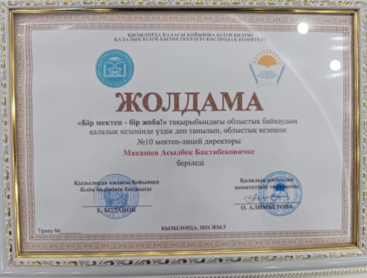 Бүгін Қалалық білім бөлімінің ұйымдастыруымен “Бір мектеп - бір жоба” тақырыбында мектеп директорлары арасында өткізілген қалалық сайыста Ы. Алтынсарин атындағы #10 мектеп - лицей директоры Асылбек Бақытбекұлының жұмысы үздік деп танылып, облыстық кезеңге жолдама алды!