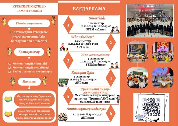 Ыбырай Алтынсарин атындағы 10 мектеп - лицейінде 18 - 22 қараша аралығында бастауыш сынып пән бірлестігінің апталығы басталды.