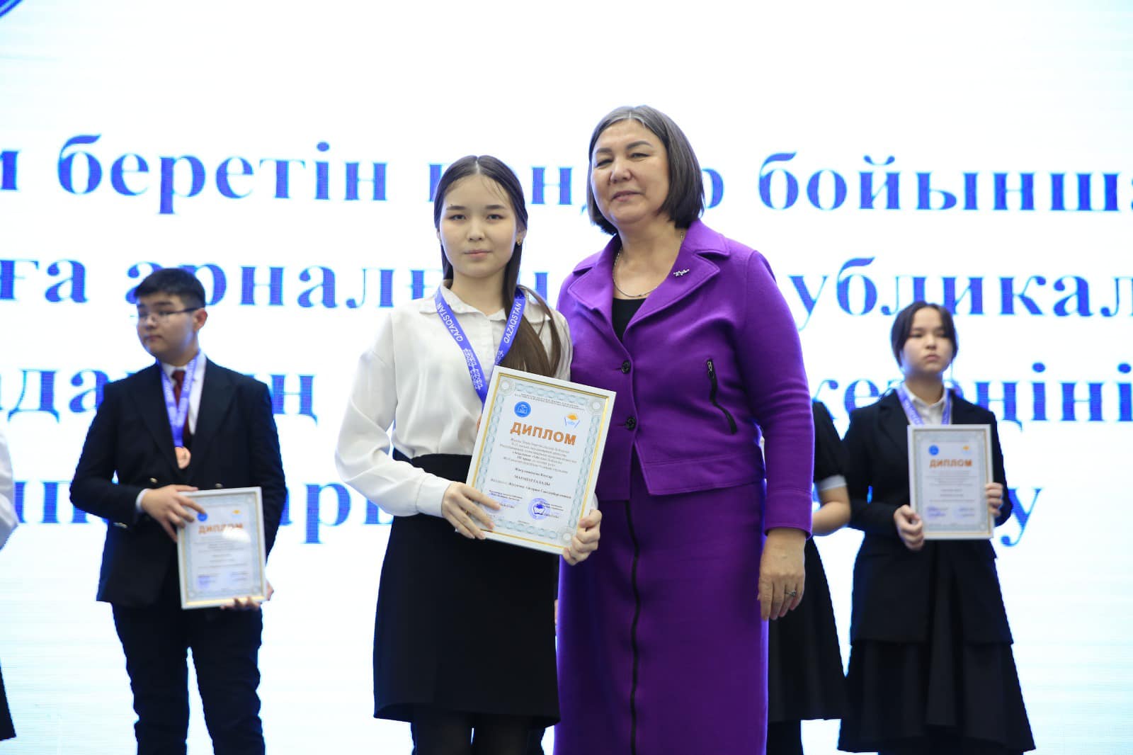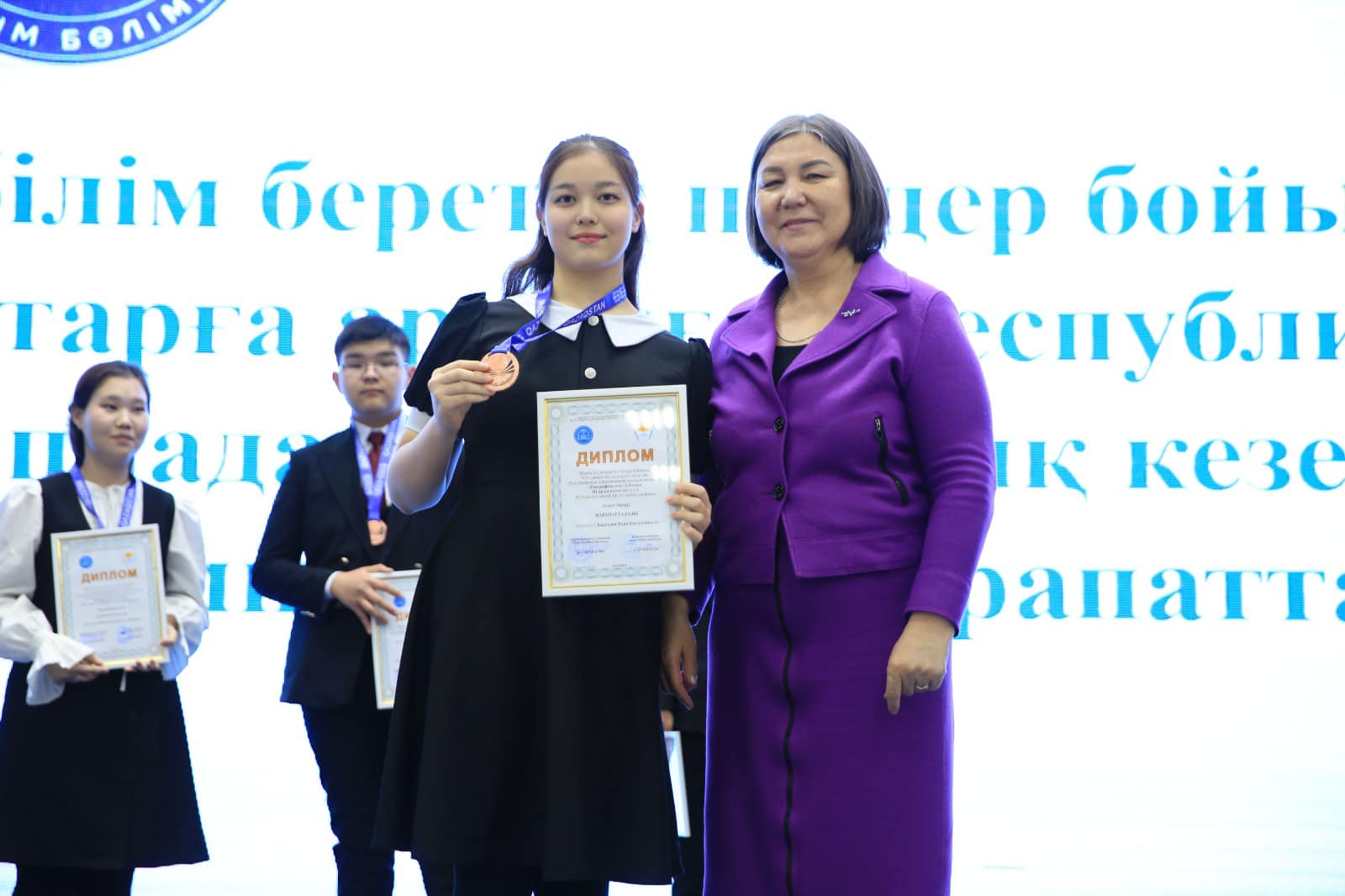 Қызылорда қаласы бойынша білім бөлімінің басшысы Садвакасова Жаннат Мылтыкбаевна жүлдегер оқушыларды жеңістерімен құттықтап, жылы лебіздерін білдірді.