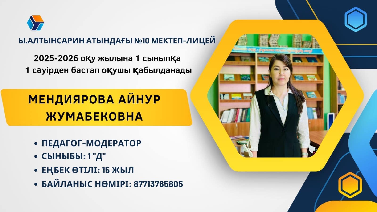 Ы. Алтынсарин атындағы 10 мектеп - лицей 2025 жылдың 1 сәуір - 31 тамыз аралығында 1 сыныпқа құжаттар қабылдайды.