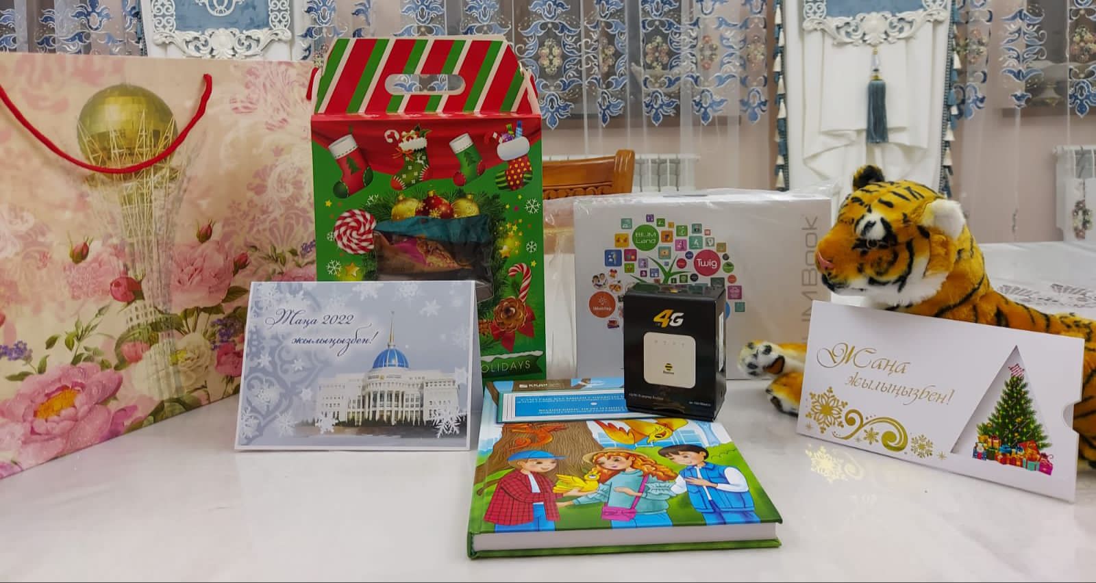 Бүгін Ы.Алтынсарин атындағы №10 мектеп-лицей директоры Асылбек Бақытбекұлы Қазақстан Республикасы Президентінің атынан мектебіміздің 4 «Е» сынып оқушысы Сыздықова Жанаттың отбасына жаңа жылдық сыйлықтарды табыстады. Оқушымыз Сыздықова Жанат Аяз ата мен Ақшақарға өзінің өлеңдерін оқып, өнерін ортаға салды. Оқушымыздың әжесі Каикбаева Гульнар президентке, қалалық білім бөліміне және №10 мектеп-лицей ұжымына өз алғысын білдірді. Жанаттың отбасына мектеп-лицей директоры өзінің ыстық ықыласын білдіріп, жаңа жылдарымен құттықтады!